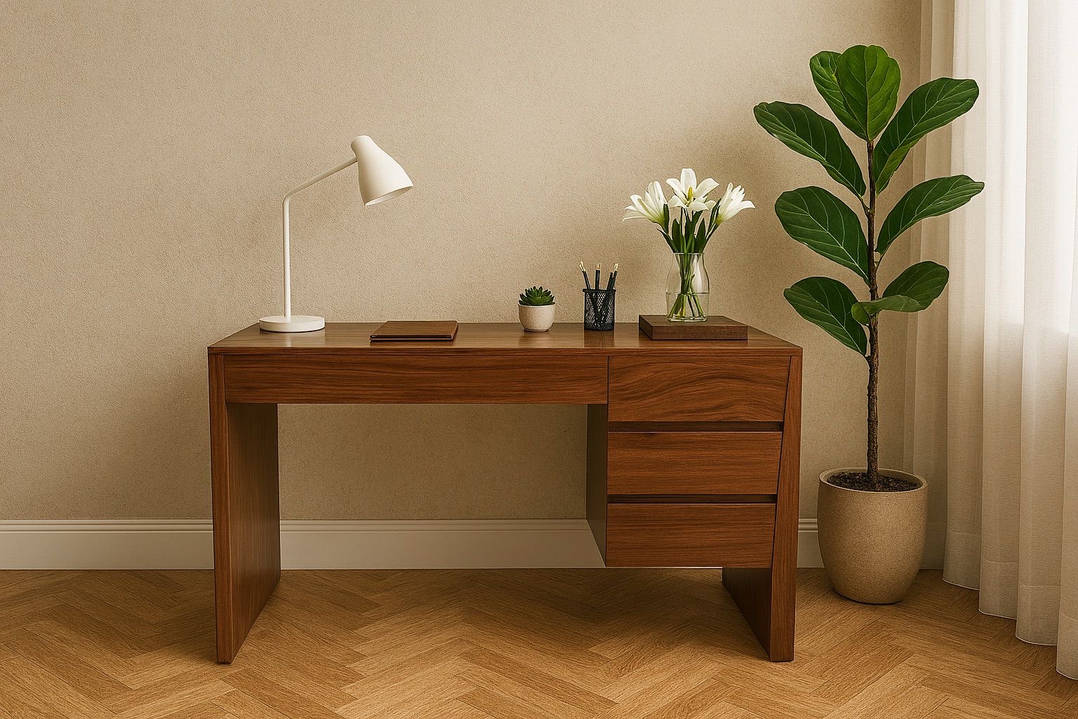 Escritorio Minimalista de Color Nogal