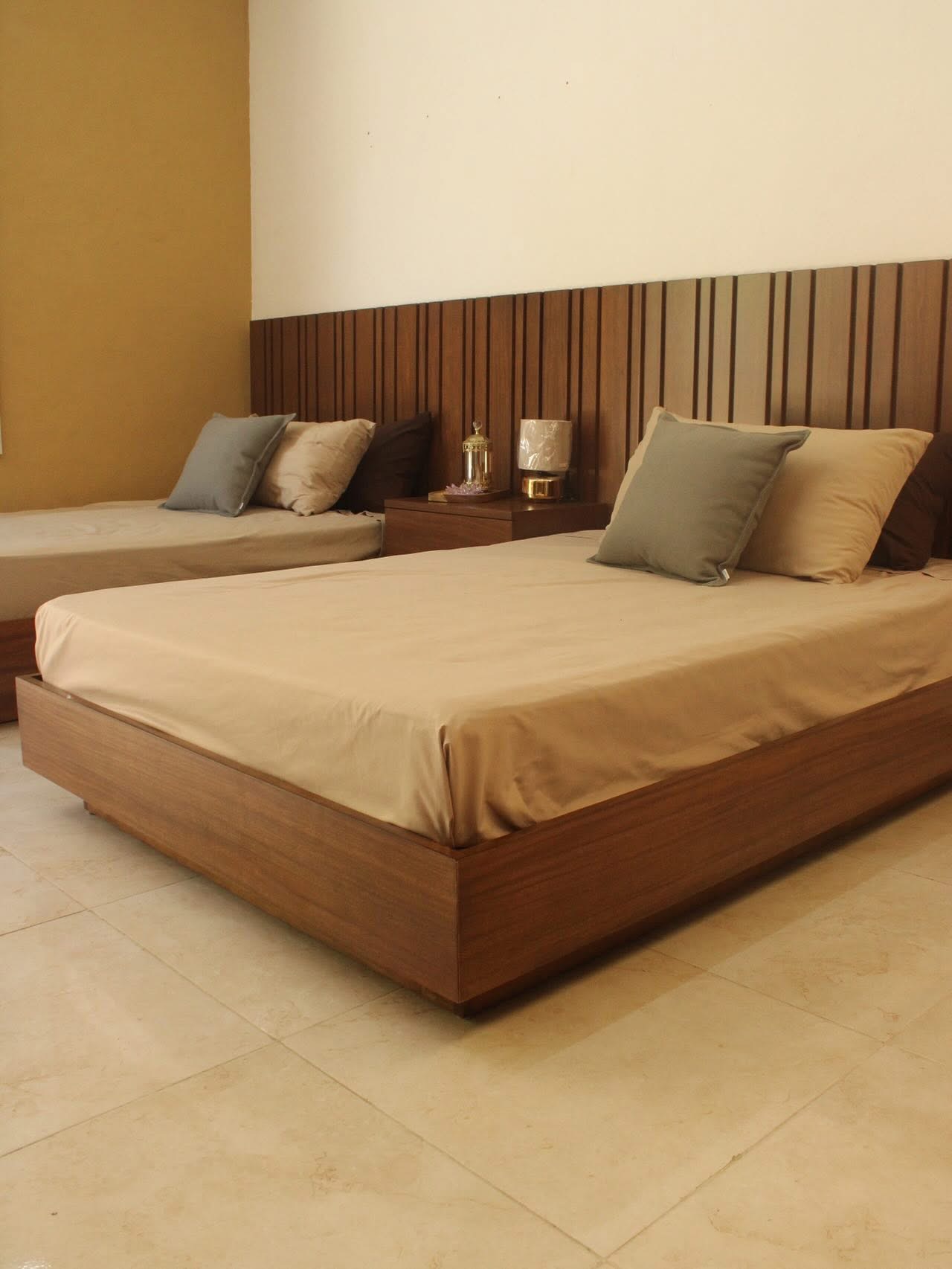 Recamara doble minimalista corte 45 en color nogal claro