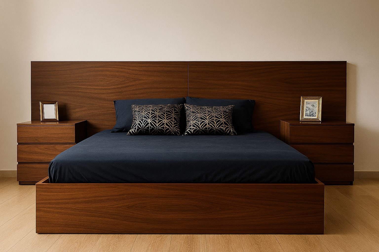 Recamara minimalista nogal